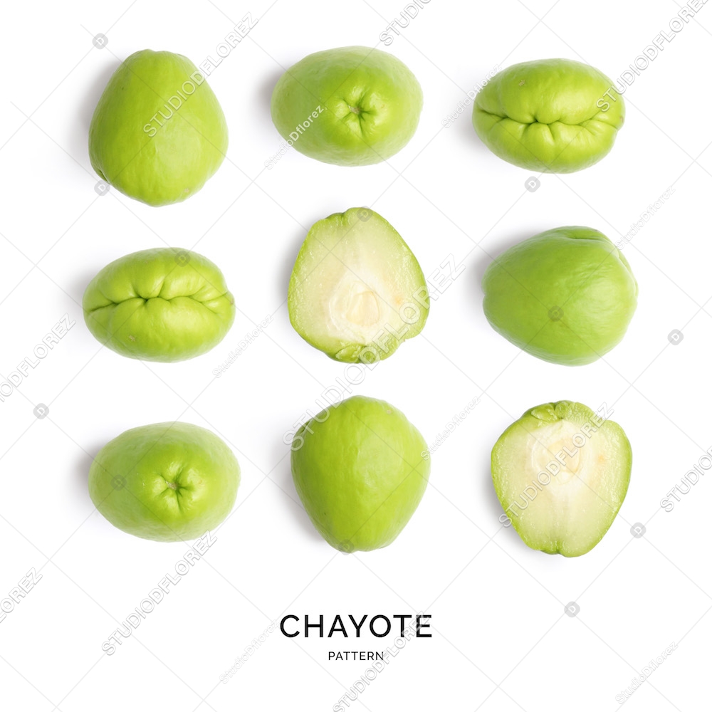 Creative layout made of chayote on the white background. Flat lay. Food concept.