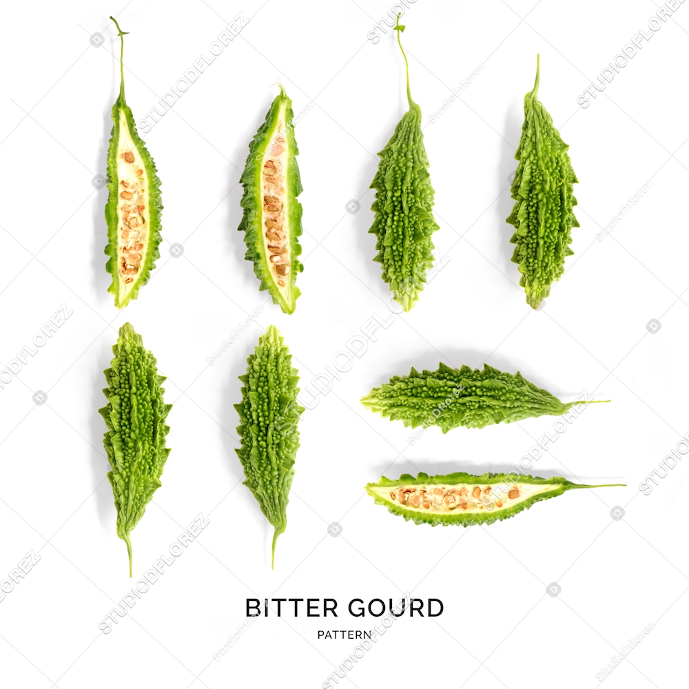 Seamless pattern with bitter gourd. Tropical abstract background. Bitter gourd on the white background.