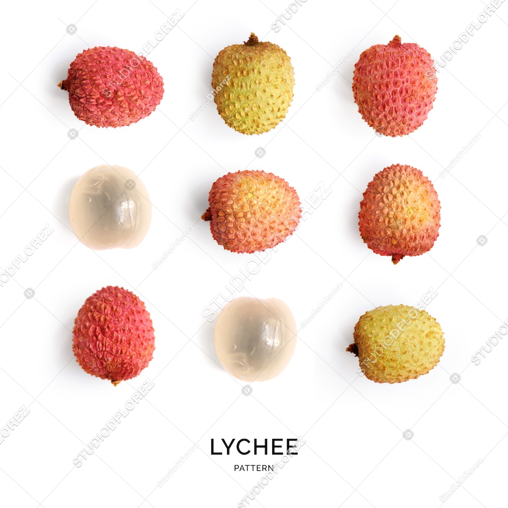 Seamless pattern with lychee. Tropical abstract background. Lychee on the white background.